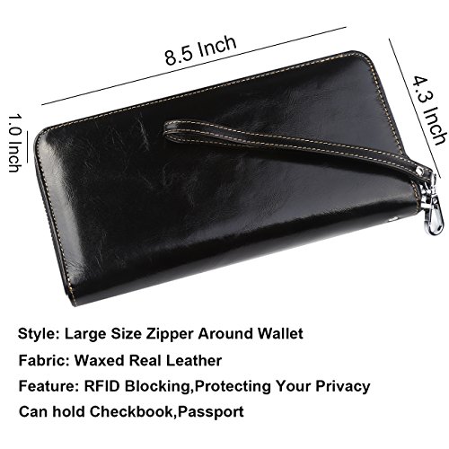 Binding : Apparel Product Description What is RFID? RFID (radio frequency identification) is a growing technology that uses radio waves to read and transfer information between devices. Personal cards that currently use this technology include credit cards, transit payment cards, and identification cards such as enhanced driver's licenses. Why use a RFID wallet? The information on cards with RFID is vulnerable to theft from nearby persons with RFID readers to scan and capture information on RFID cards without ever physically coming in contact (similar to scanning a barcode). RFID wallets protect cards from unknown scans with the unique protective layering crafted inside the wallet lining. Why choose a Dante wallet? Our wallets are not made with cheap bonded leather like most wallets in the market, but are crafted and sewn together using 100% premium cowhide nappa leather that will endure the wear and tear of everyday use for years to come. Our wallets are designed to protect without sacrificing in aesthetics. The roomy design includes 17 credit card slots, 1 clear slots for ID, 3 Large Cash/Checkbook/Phone pocket,1 zippered pocket for change and a pen loop. The RFID blocking layer has been tested to block signals ranging from 10MHz and above and does not make crinkling noises as with other RFID wallets in the market. Our wallets are wrapped and packaged in attractive gift boxes making it the perfect gift for any occasion and are covered by our product lifetime warranty after registration to ensure complete satisfaction with your purchase. Please note: This wallet shields RFID frequencies ranging from 10MHz to 3000MHz. It does not shield against older proxy cards that operate at low frequencies of 125 kHz. 0