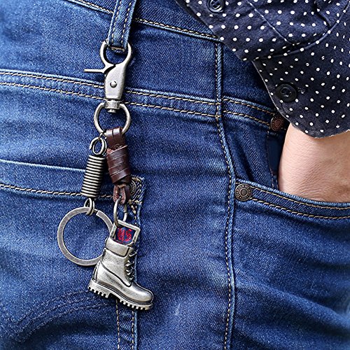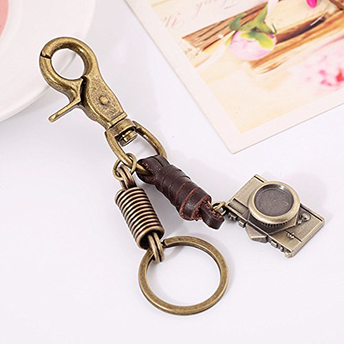 Type: Key Chain Gender: Unisex Material: Cowhide, Alloy Occasions: Gift, Souvenir, Daily Life, Travel, etc Features: Vintage Style, Alloy Pendant, Bag Hanging Decoration Total Length: 15cm/5.91" (Approx.) Key Ring Outer Diameter: 3cm/1.18" (Approx.)