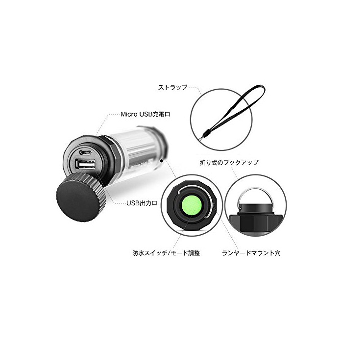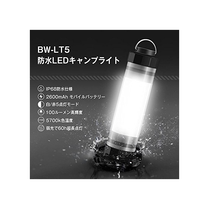 원본상품명: ランタン LEDキャンプライト 100ルメン USB充電式 ライト テントライト 中電 5点モド 防水IP68 量 耐久性 バッテリ モバイルバッテリ機能付 アウトドア 登山 夜釣