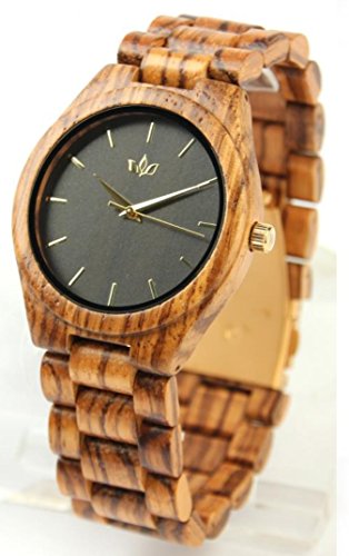 -. Title : Woody Watch Zebra Wood Wristwatch with Bracelet and Japanese Quartz Movement for Men