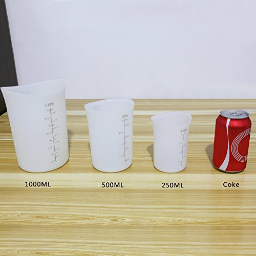 Feature : Made of durable, FDA food grade silicone, heat resistant up to 490 Degree F (254 Degree C) / Easy to use. Pours liquid precisely with no spills. Easy to clean. Microwave and dishwasher safe / Smooth inside, textured outside. Stable flat base / Translucent for quick and easy measuring. Measuring units: ml, oz and cup / We guarantee quality and service. Full Refund if you are unsatisfied!