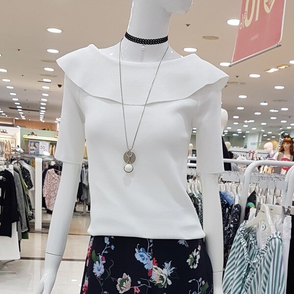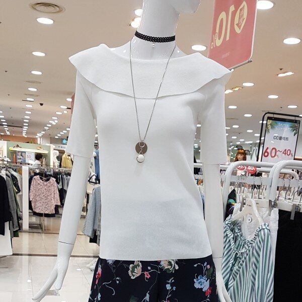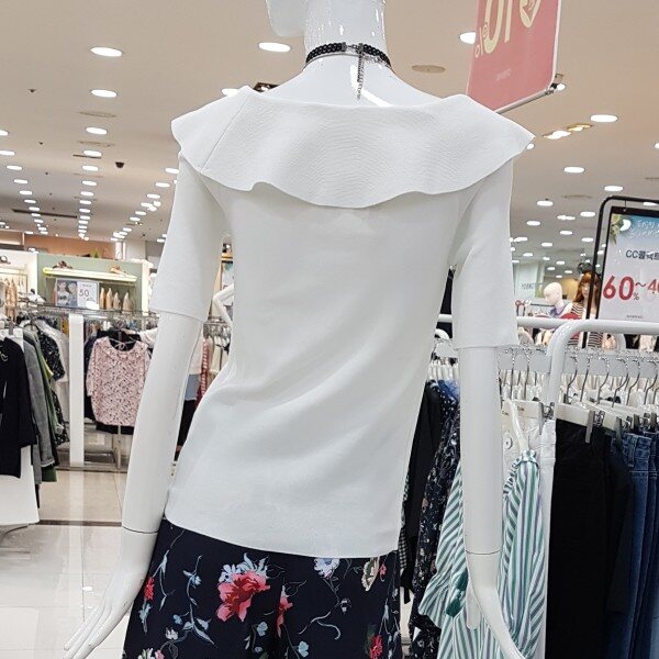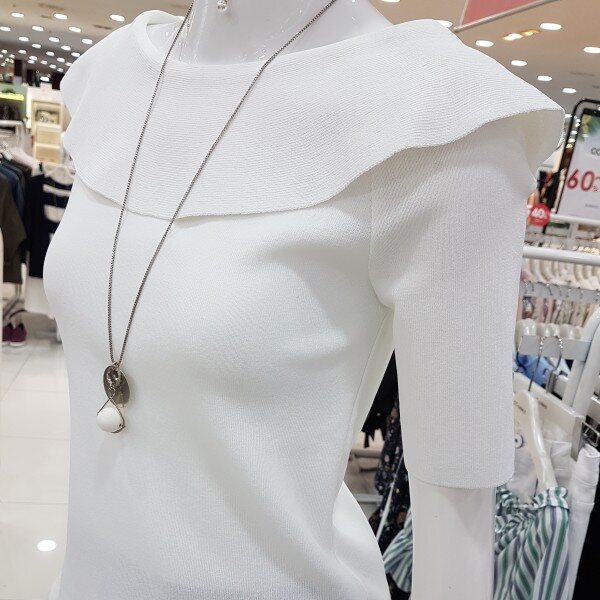 어깨덧단에 여성스런 니트랍니다보트넥목선에 날씬하고 매력있네용얇은 니트에 초여름가능하시구요슬림하니 이너로 코디도 좋으셔용깔끔화이트에 날씬아이 만나보셔요^^