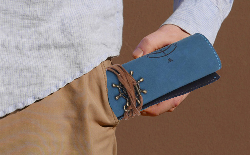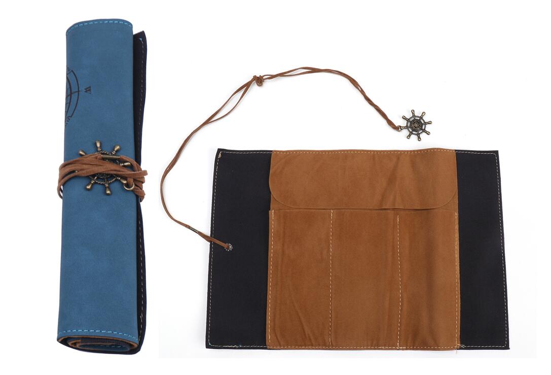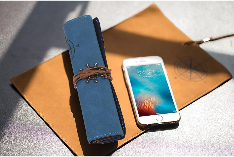 ・ロール型ペンケース セット内容:ペンケース×1、革紐×1 サイズ:長さ300mm×幅202mm カラー:ブルー 材質:PU 重量:100g