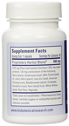 -. Binding : Health and Beauty -. Brand : Bio-Botanical Research -. EAN : 8853050401165 -. Feature : Dietary Supplement -. IsAdultProduct : 0 -. Label : Bio-Botanical Research -. LegalDisclaimer : These statements have not been evaluated by the Food and Drug Administration (FDA). These products are not meant to diagnose' treat or cure any disease or medical condition. Please consult your doctor before starting any exercise or nutritional supplement program or before using these or any product during pregnancy or if you have a serious medical condition. -. Manufacturer : Bio-Botanical Research -. Model : OLIV/60 -. MPN : OLIV -. PackageQuantity : 1 -. PartNumber : OLIV -. ProductGroup : Health and Beauty -. ProductTypeName : HEALTH_PERSONAL_CARE -. Publisher : Bio-Botanical Research -. Size : 60 caps -. Studio : Bio-Botanical Research -. Title : Bio-Botanical Research - Olivirex Combination 60 caps -. UPC : 899870002128