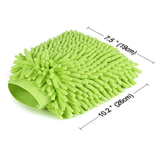 (The effect is far better than 2cm) Package Includes: 1 Pair of Microfiber Chenille Wash Mitts - Green