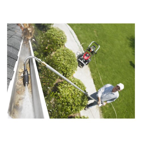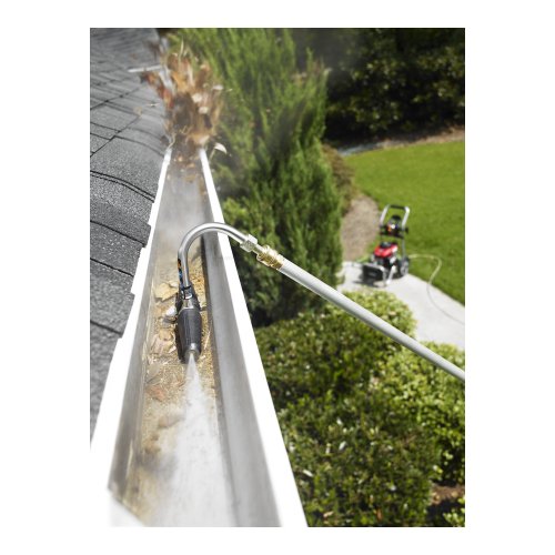 The Powerfit Gutter Cleaner Attachment attaches to the wand of your gas pressure washer (not included) to clean your gutters. Fits most gas pressure washers up to 3,000 PSI. Features a 1/4 inch inlet size and quick-connect coupler for easy attaching and detaching. Includes two high-pressure nozzles for blasting away leaves and debris quickly and easily. Universal fit for gas pressure washers.Feature
