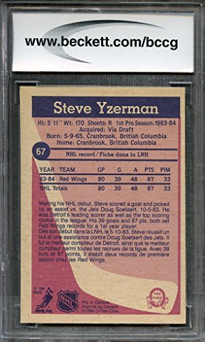 1984-85 o-pee-chee #67 STEVE YZERMAN detroit red wings rookie card BGS BCCG 9 Graded Card