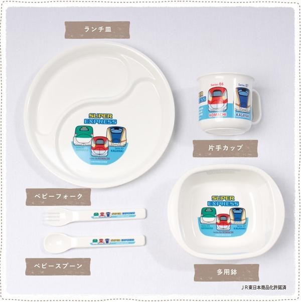 ランチ皿・多用鉢・片手カップ・ベビースプーン・ベビーフォークのセットです。