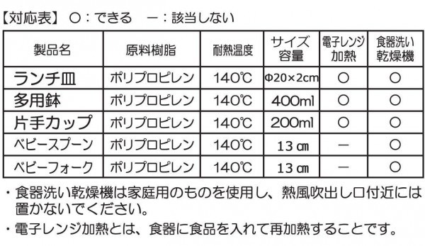 fk094igrjsランチ皿・多用鉢・片手カップ・ベビースプーン・ベビーフォークのセットです。 製造国:日本 素材・材質:ポリプロピレン※お届け地域により、別途運賃がかかる場合やお届けできない場合がございますので、お問い合わせ下さい。