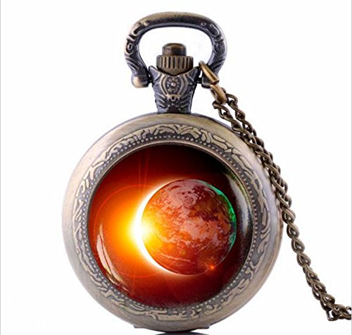 This 32 inch extra long chain necklace features a real working pocket watch pendant that measures about 1 1/2 inches from side to side and 2 inches tall with bail. The pendant is adorned with a beautiful high quality print sealed behind a 25 mm magnifying glass dome.Feature