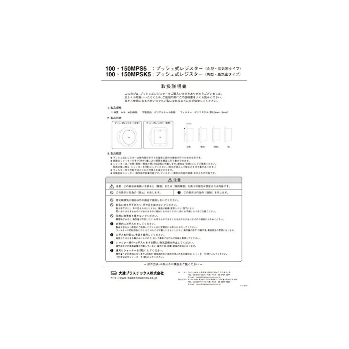 원본상품명:大建プラスチックス 角型プッシュ式レジスタ 100150MPSK5