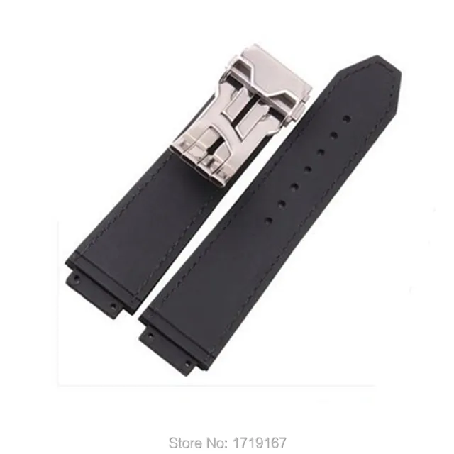 | [해외]새로운 25*19mm 맞춤 허브 시계 밴드 벨트 두 사이드 정품 가죽 레이어 고무 시계 스트랩 걸쇠 크기 22 미리메터 |