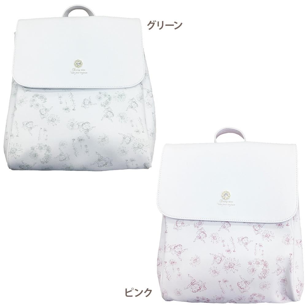 かわいい雰囲気も、上品な雰囲気も兼ね備えたデザイン♪いつものお出掛けをもっとハッピーにしてくれるアイテムです。 製造国:中国 素材・材質:合成皮革 商品サイズ:W230×H270×D115mm 仕様:ポケット×2背面ファスナー付 ※サプライヤー直送品 ご注文後2~3営業日後の出荷となります【商品名】DaisyRico デイジーリコ プチブーケ ミニリュック DR8-B2 グリーン