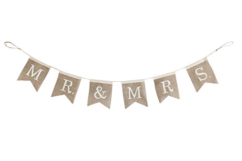 Cypress Home Mr. and Mrs. Burlap Wedding Bunting Banner - Engagement Party or Wedding Reception Decoration - 67”L x 0.5”W x 8.25”H