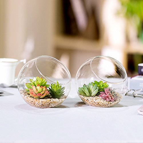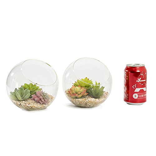 Mini 5.9 Inch Clear Glass Planter Terrarium, Air Plants Tabletop Display Globe, Succulents Holders or Candle Holders, Set of 2