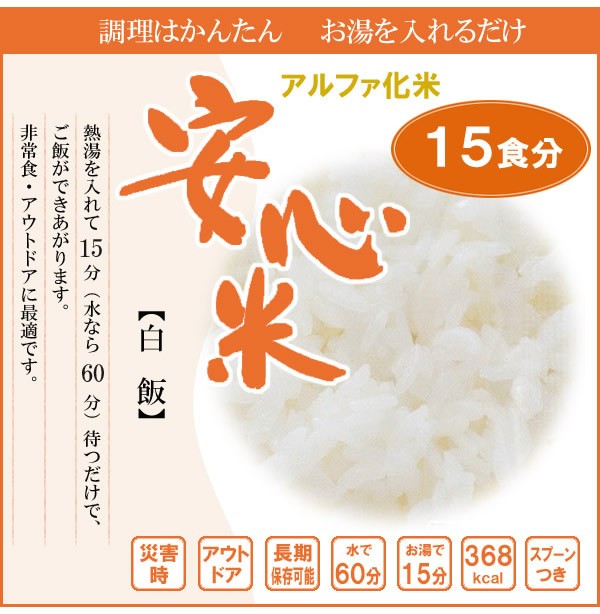 | 原材料 | 名称:アルファ化米(白飯) うるち米(国産) |