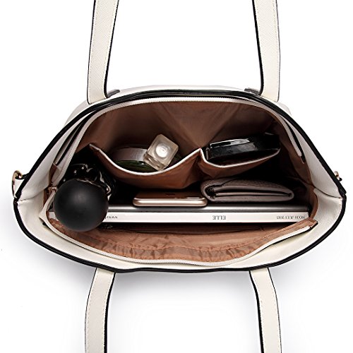 Ein grosses Facher mit Reissverschluss und zwei offene Innentaschen. Mit einen langen, abnehmbaren passenden Schulterriemen