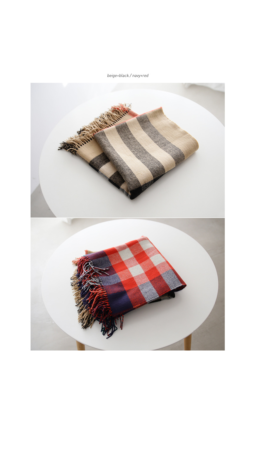 체크패턴이 포인트 되어주면서 끝단엔 프린지 마감으로