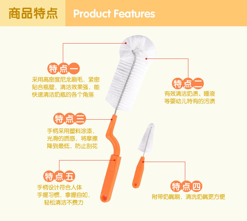 洗奶瓶刷子 吸管奶嘴刷 婴儿童 360度旋转软毛套装清洁清洗
