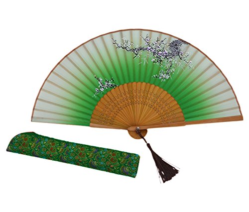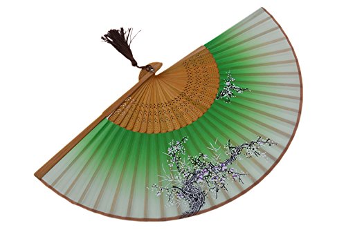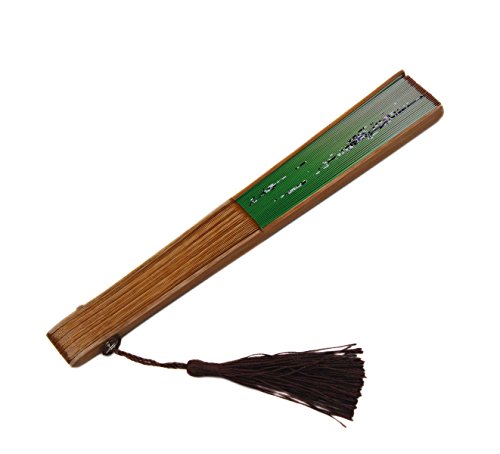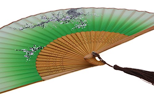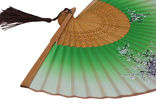 Amajiji Chinease/Japanese Vintage Retro Style Women Folding Fan Hand Fan with Tassel Perfect For Gifts HQJ (8.27") (Green)