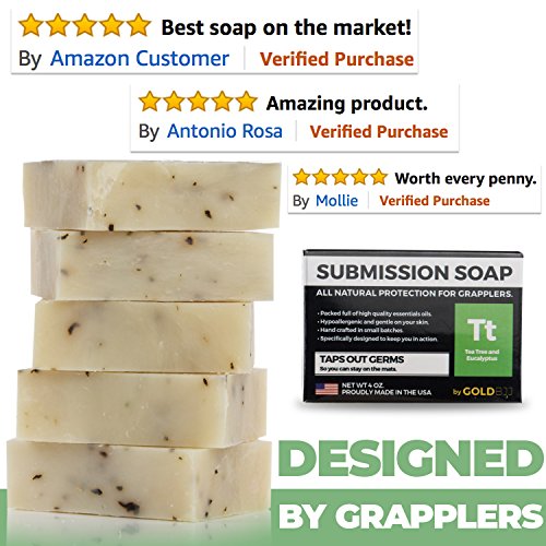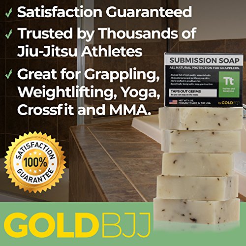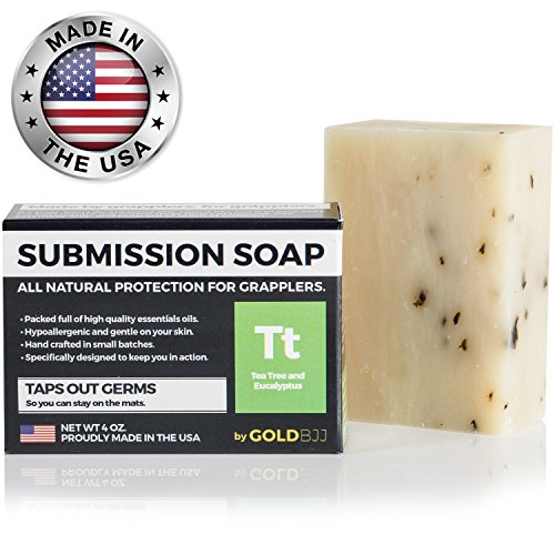 ALL NATURAL PROTECTION SPECIFICALLY DESIGNED FOR JIU JITSU AND WRESTLING! Gold BJJ's Submission Soap is made from a unique blend of essential tea tree oil and essential eucalyptus oil. These compounds have been clinically proven to effectively combat a wide variety of fungus, virus, and bacteria.
