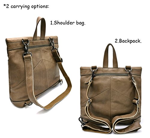 La Poet Women’s Genuine Leather Convertible Shoulder Crossbody Bag Tote Backpack