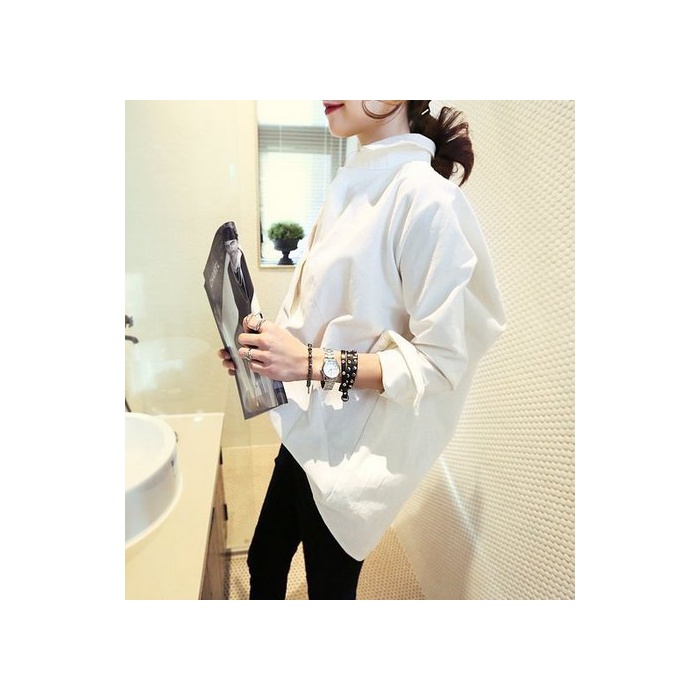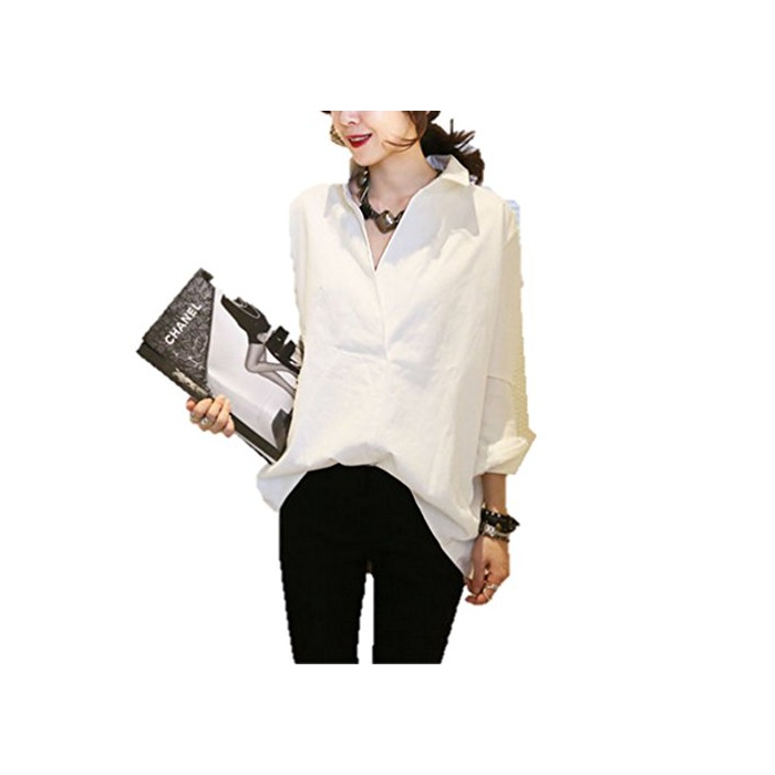 레이디스 V넥 롱 셔츠 블라우스 백 버튼 러프 스타일 캐주얼 어른 깨끗한 화이트 네이비 S M L 사이즈 ShareO2(쉐어 O 투)오리지날(화이트M사이즈)