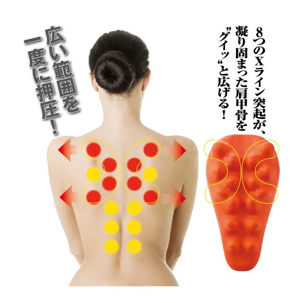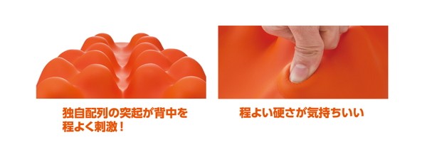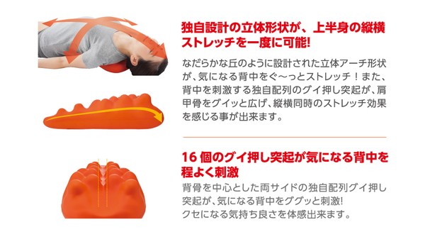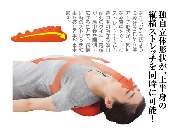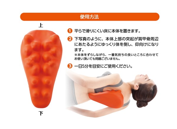 本体上部の突起が肩甲骨周辺にあたるようにゆっくりと体を倒し、仰向けになります。