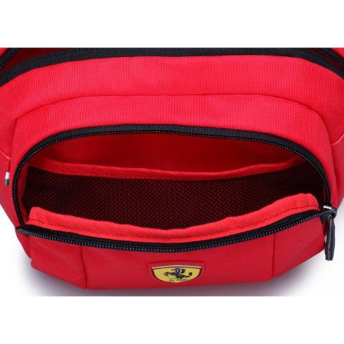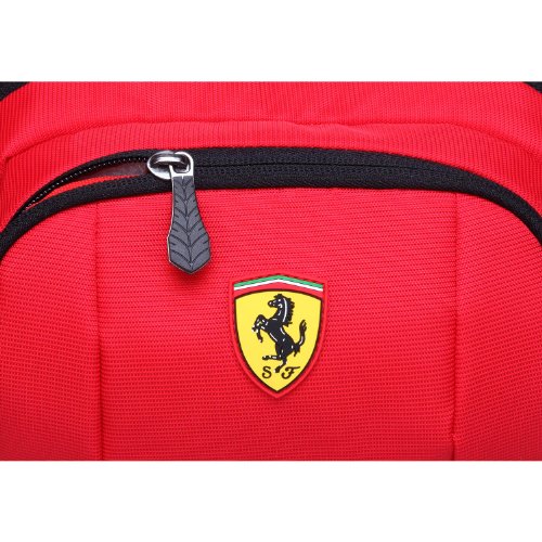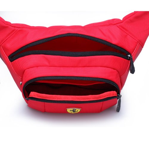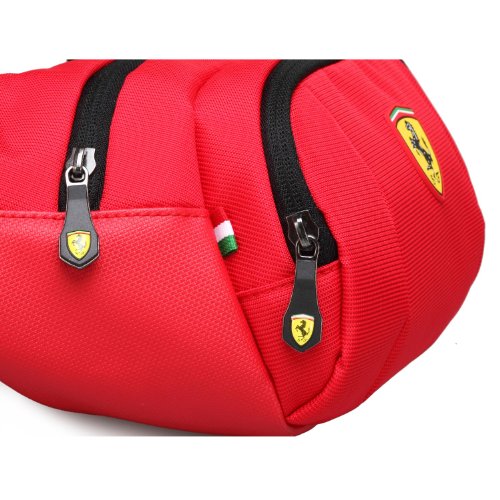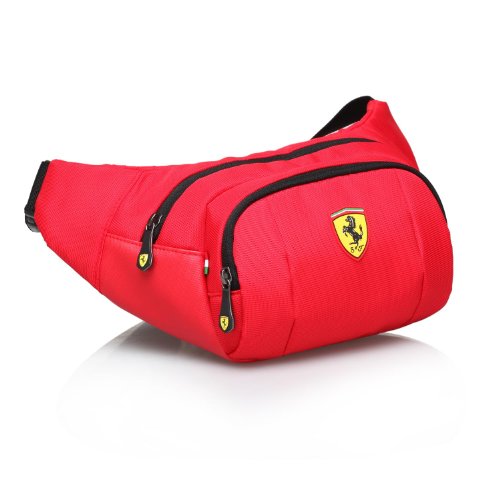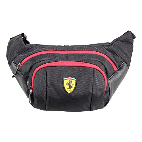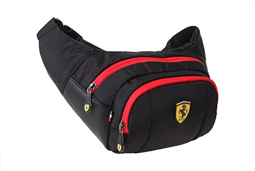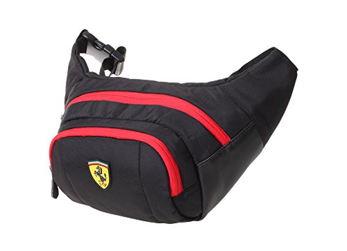 -. Binding : Apparel -. Brand : Ferrari -. Department : unisex-adult -. Feature : 90% Nylon, 10% Polyurethane / Iconic Ferrari shield logo proudly displayed on the front / Adjustable waist strap / Dual compartments perfect for wallets, passports, small electronics, etc... / Ferrari shield logo inlay in interior -. NumberOfItems : 1 -. PackageQuantity : 1 -. ProductGroup : Apparel -. ProductTypeName : BAG -. Title : Ferrari Waist Bag