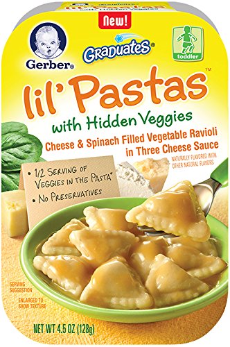 -. Title : Gerber Graduates Lil Pastas with Hidden Veggies Spinach Filled Vegetable Ravioli In Creamy Three Cheese Sauce, 4.5 Ounce
