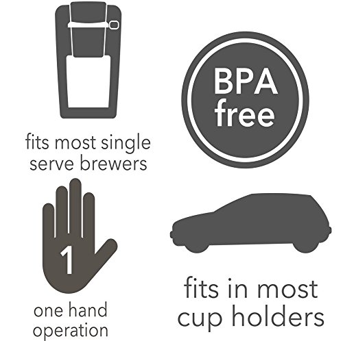 - BPA-free and break-resistant plastic; Tumbler fits in most car cup holders and single serve brewers