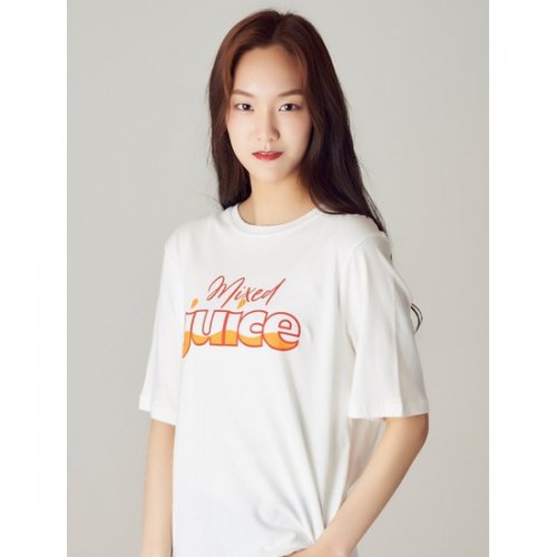 ● 전면 JUICE 박스 레터링 프린트로 귀여운 포인트를 준 티셔츠.