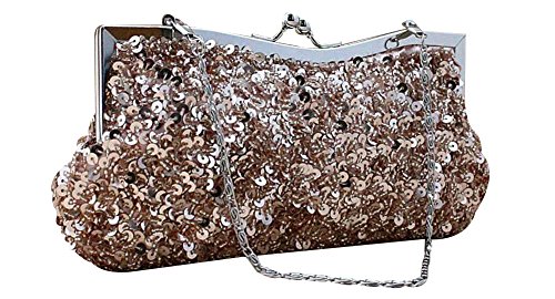 A dazzling evening bag covered in sparkling champagne-colored sequins and accented with silver-tone hardware.