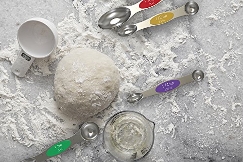 - DOUBLE SIDED FOR LIQUIDS AND SOLIDS - Cook, prep, and create meals with ease without going to your cabinet, our unique double sided spoon is designed to measure various amounts liquids and solids with accurate tsp/tbsp and mL measurements