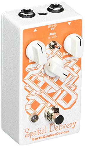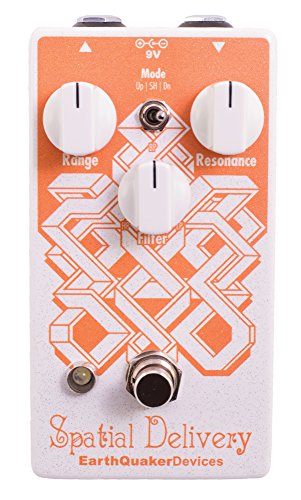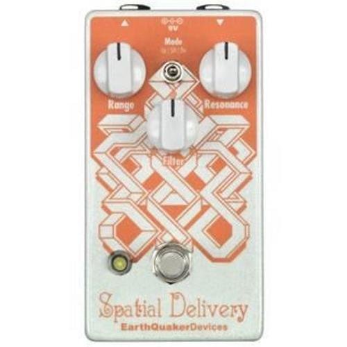Studio : EarthQuaker Devices Publisher : EarthQuaker Devices Product Description The Spatial Delivery is an oddball, a voltage controlled envelope filter that allows you to step outside the universe of funk while reinforcing your secret love affair with auto-wah. It has 3 modes- Up Sweep, Down Sweep and Sample and Hold. With Range, Resonance and Filter controls you can get super emphasized filter sweeps in the Up and Down modes. The Range, in combination with pick attack, controls the sensitivity and reaction time of the envelope and thus the width of the frequency sweep. The higher the Range and harder the attack equals a faster reaction time and higher frequency sweep and vice versa. Reign in the controls a bit, add your favorite overdrive/fuzz after the Spatial Delivery and you've got a real nice resonant, cut-through-the-mix lead tone. Crank the controls back up and you're a neo-bedroom rock god. In the Sample and Hold mode the filter is controlled by random voltage and the Range controls the speed. Add a sub octave into the mix (before or after) and you've just created a deep fried space droid computer freak-out. The filter can be cross faded between high pass (counter clockwise), band pass (center) and low pass (clockwise) for a wide variety of voices. The Resonance control goes from zero to the brink of oscillation and adds more body and ring to the filter voice. EarthQuaker recommends placing the Spatial Delivery first in your signal chain. However, due to its envelope control, experimenting with pairing and signal chain placement can take the potential of the Spatial Delivery even further. Each Spatial Delivery is hand made bit by damn bit in silver studded Akron Ohio. Power supply not included.Get your EarthQuaker Devices Spatial Deliver Sample Hold Envelope Filter Guitar Effects Pedal today at the guaranteed lowest price from Sam Ash Direct with our 45-day return and 60-day price protection policy. 0