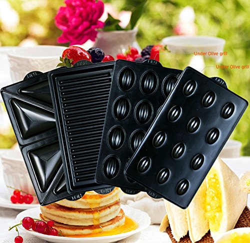 3 sets of detachable heating plates; Grill; Olive; Sandwich