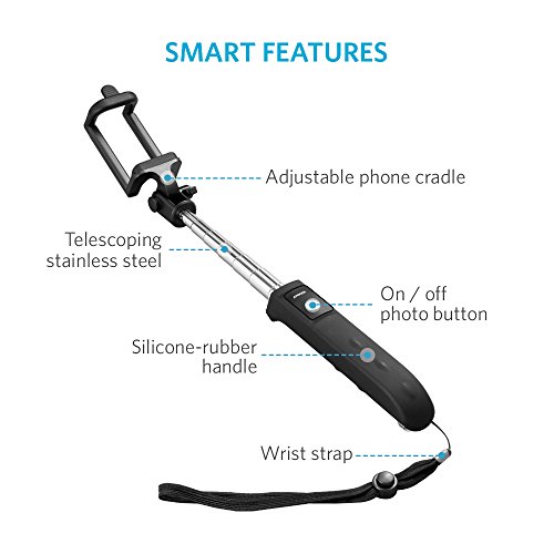 Selfie Stick, Anker Extendable Bluetooth Monopod with Built-in Remote Shutter for iPhone Se/6s/6/6 Plus, Samsung Galaxy S7/S6/Edge, Note 5/4, LG G5, Moto X/G and More