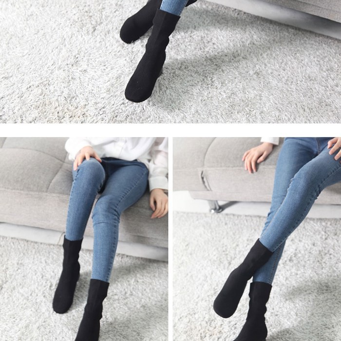 商品名:ストレッチブーツ レディース チャンキーヒール 太ヒール スエード調 2017 秋冬 ファッション 靴 婦人靴