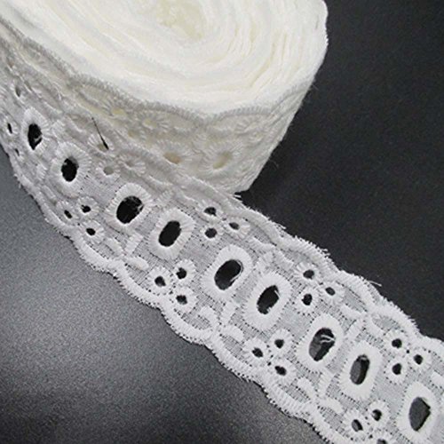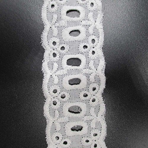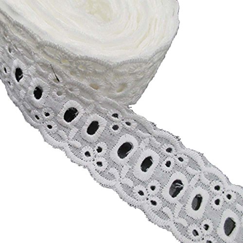 15 Yards 1-1/8 Inches Wide White Cotton Eyelet Lace Ribbon Trimming Tape For Garment Home Decor DIY Craft Supply