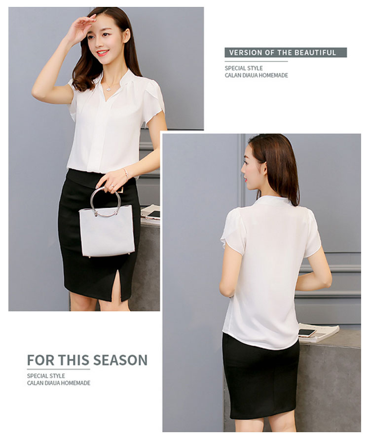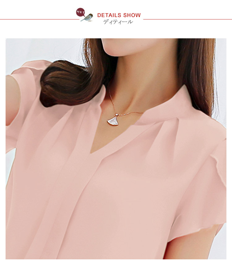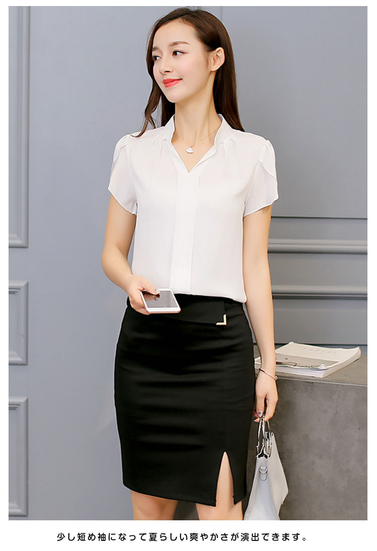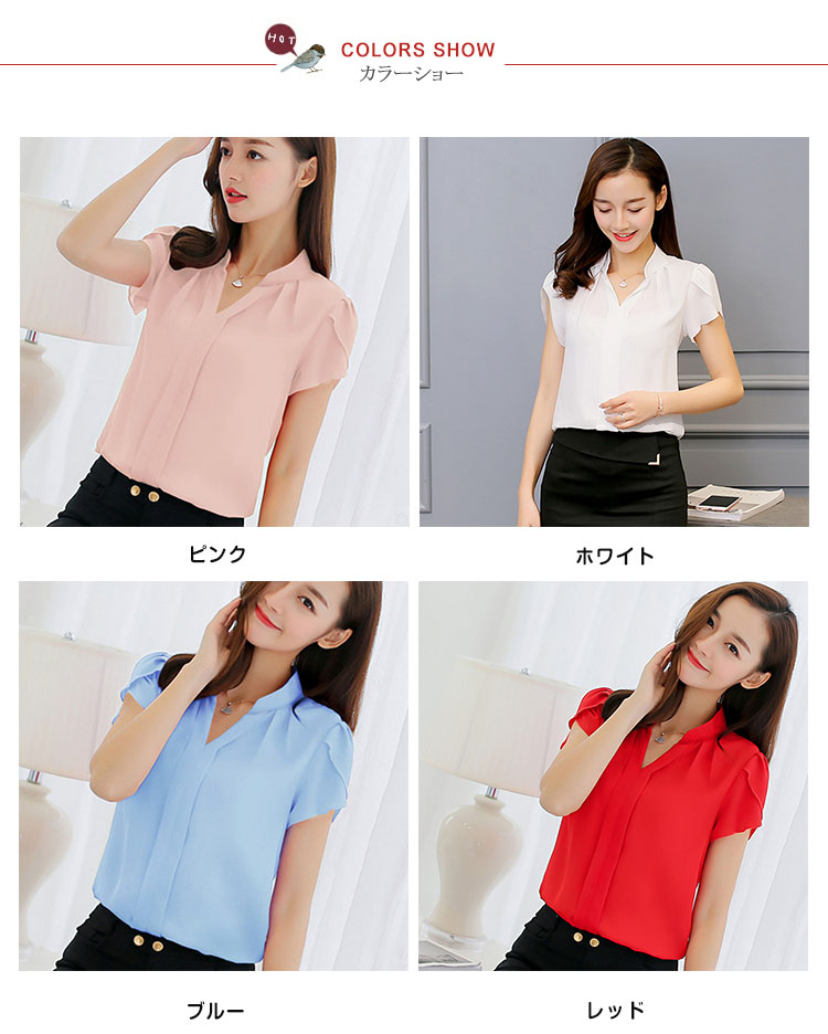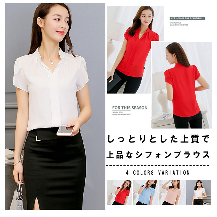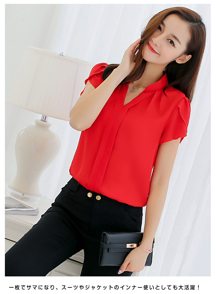 | しっとりとした上質で上品なシフォンブラウス。大人Vネックラインが綺麗なデコルテに見せてくれます。少し短め袖になって夏らしい爽やかさが演出できます。一枚でサマになり、スーツやジャケットのインナー使いとしても大活躍! | |
