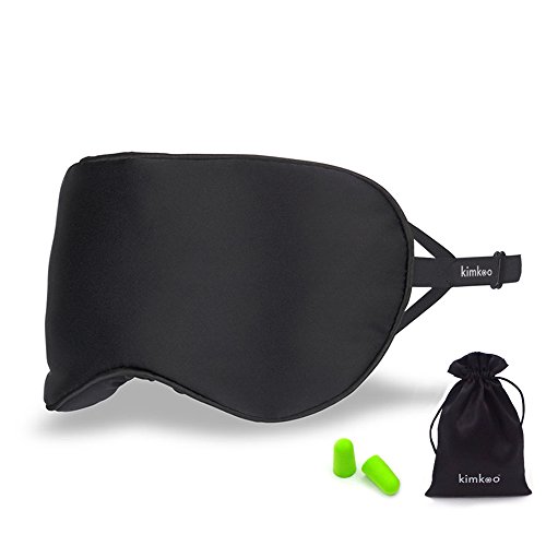 Kimkoo natural silk sleep mask & Comfortable and super soft silk eye mask for sleeping with ear plugs-black