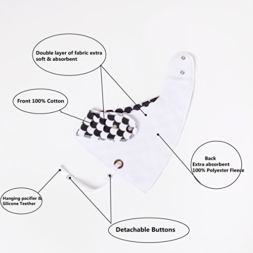 Beautiful bandana style is fashionable and comfortable to use on your baby.Each bib has a lanyard strap so that you can attach your baby's dummy to the bib without it dropping or losing it