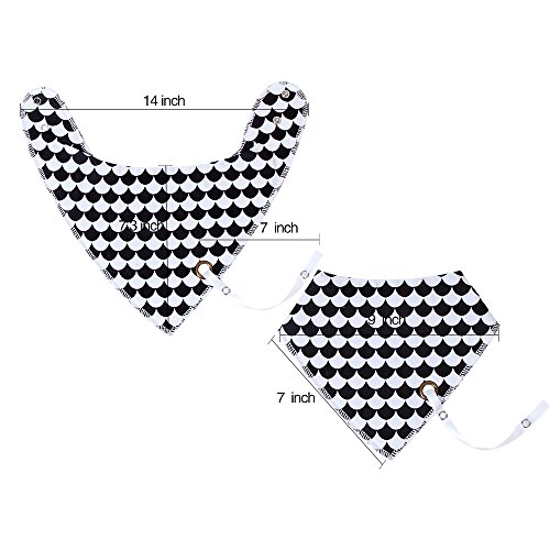 100% front cotton and and water resistant polyester fleece back bibs to protect your baby for wetness and moisture. Dual layered protection for maximum protection against wetness during teething, drooling, spit outs and spills. Great for feeding time