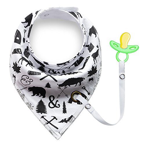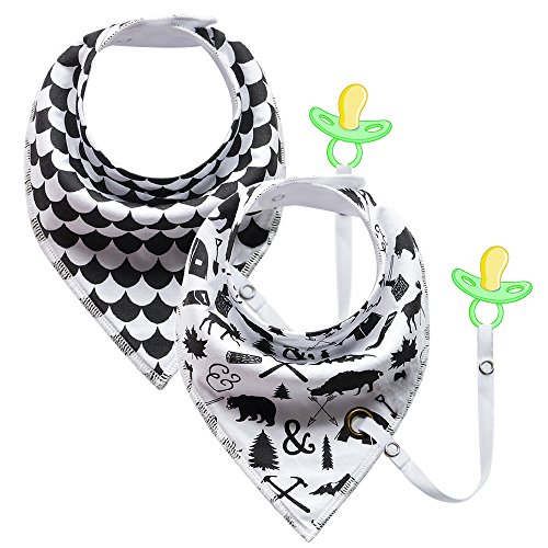 Baby bandana bib set. For drooling, teething, Set of 2 cotton bibs. Soft and high absorbent bibs for boys and girls. Water resistant, with Dummy strap