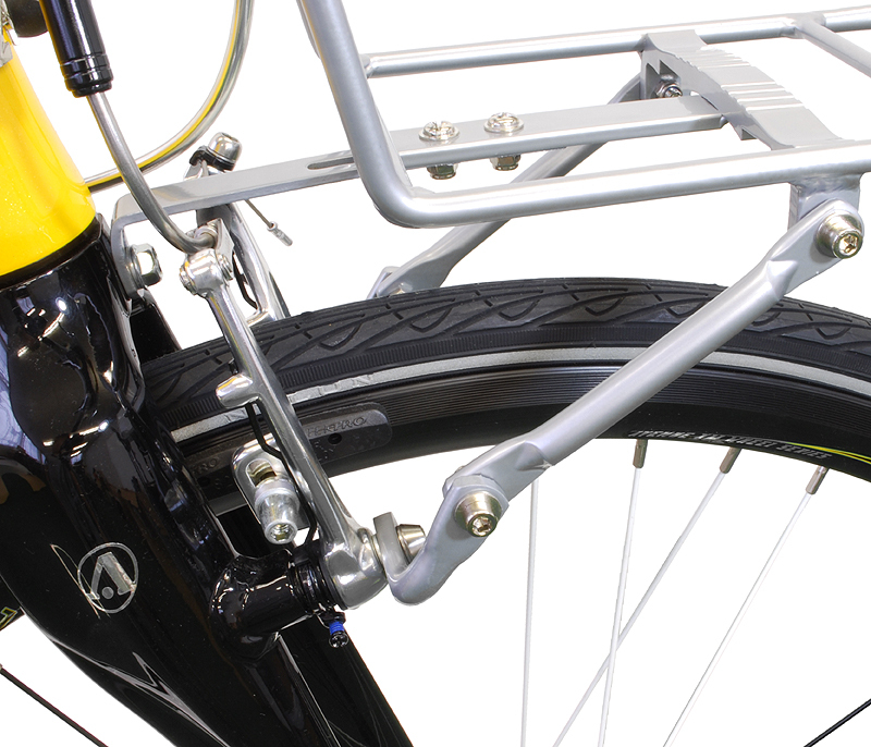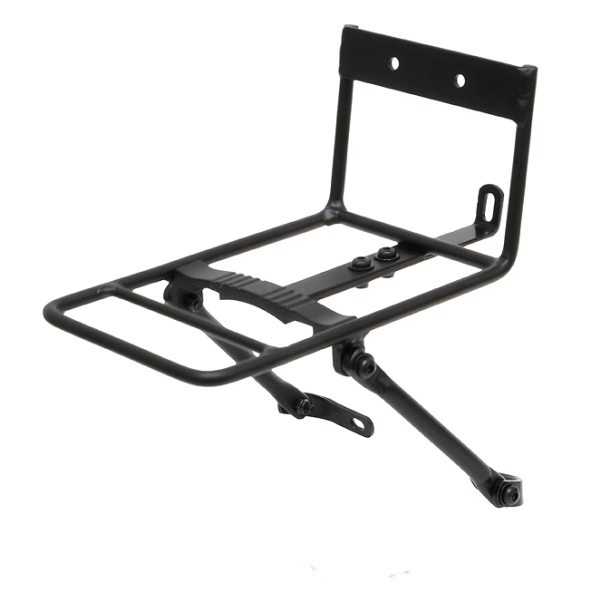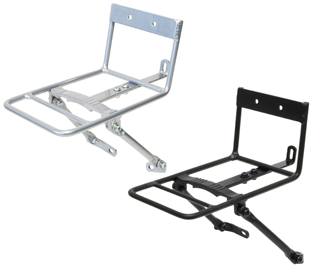 ・可変式ステーが幅広い取り付けを可能にし、フロントサスペンション装着車などにも対応したアルミ製フロントキャリア