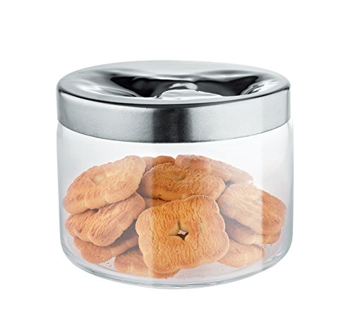 Alessi "Carmeta" Cookie Jar in Glass With Lid in 18/10 Stainless Steel Mirror Polished, Silver
