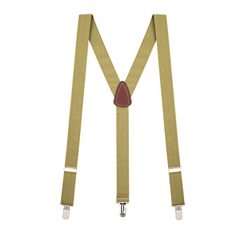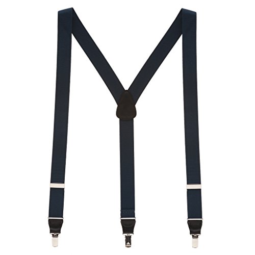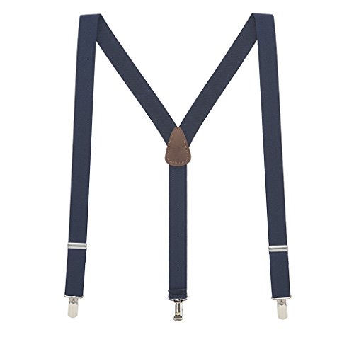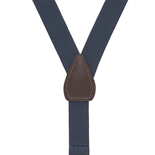 Binding : Apparel Product Description Designed with a new narrower pin clip, these 1.25-inch wide elastic suspenders will quickly become a wardrobe necessity. Made with high-quality pin clips, they are designed with strong nickel pins that go straight through the fabric of your pants. The clips are further reinforced with nylon teeth that hold both sides of the fabric to prevent pull-through. Finished with a leather crosspatch on a Y-back, the brown tan suspenders have a brown leather crosspatch, the navy is offered with either a black or brown crosspatch, and all other colors have a black leather crosspatch. These are available in three lengths for the perfect fit. 0