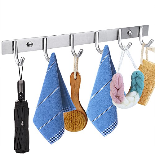 -. Title : VOTRON Coat Hooks Wall Mounted Modern Hook Rack Stainless Steel Towel Hanger Holder Organizer Storage with 5 Double Heavy Duty Hanger Hooks Rail for Bathroom Bedroom Kitchen Office