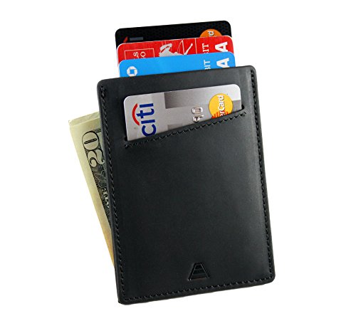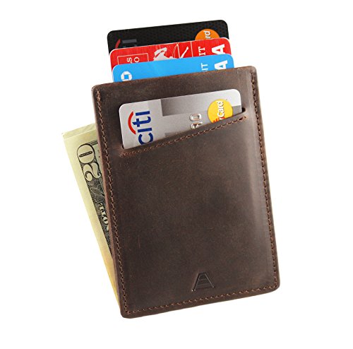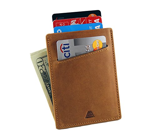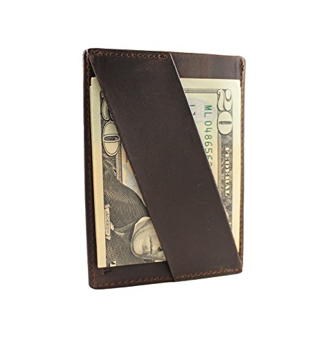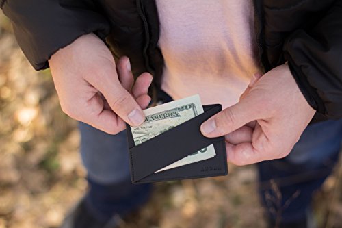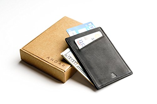 Andar crafts unique everyday products that help you organize and minimize what you carry. The Duke Front Pocket Wallet is a slim minimalist card holder that's big enough to carry a good amount of cards and cash, but small enough to not bother you when you carry it. More Than Just a Wallet The Duke not only can hold several bills in its leather cash strap it uniquely holds several cards and keeps the wallet immensely thin. Cards are securely held in the middle pocket sleeve and front pocket which are protected by RFID blocking materials. These materials are woven in the pocket sleeves to help shield and protect personal and financial information from being stolen. Great Men's Gift Our Slim Wallets make great gifts for anyone that needs to downsize from their big bulky wallet. Backed By Our Unconditional Warrenty We take pride in the craftsmanship and quality of our leather goods and strive to continually improve. If you are not pleased with your wallet or if an issue arises, we'll provide a replacement or give you a full refund. Features: Full Grain Classy Leather RFID Blocking Carrys 1-10 Cards 1 Quick Access Card Slot and 1 center pouch slot to hold the majority of your cards 1 Large center pouch to hold the majority of your cards 1 leather cash strap to hold and store cash or receipts Premium Full Grain Leather 1 Year Warranty