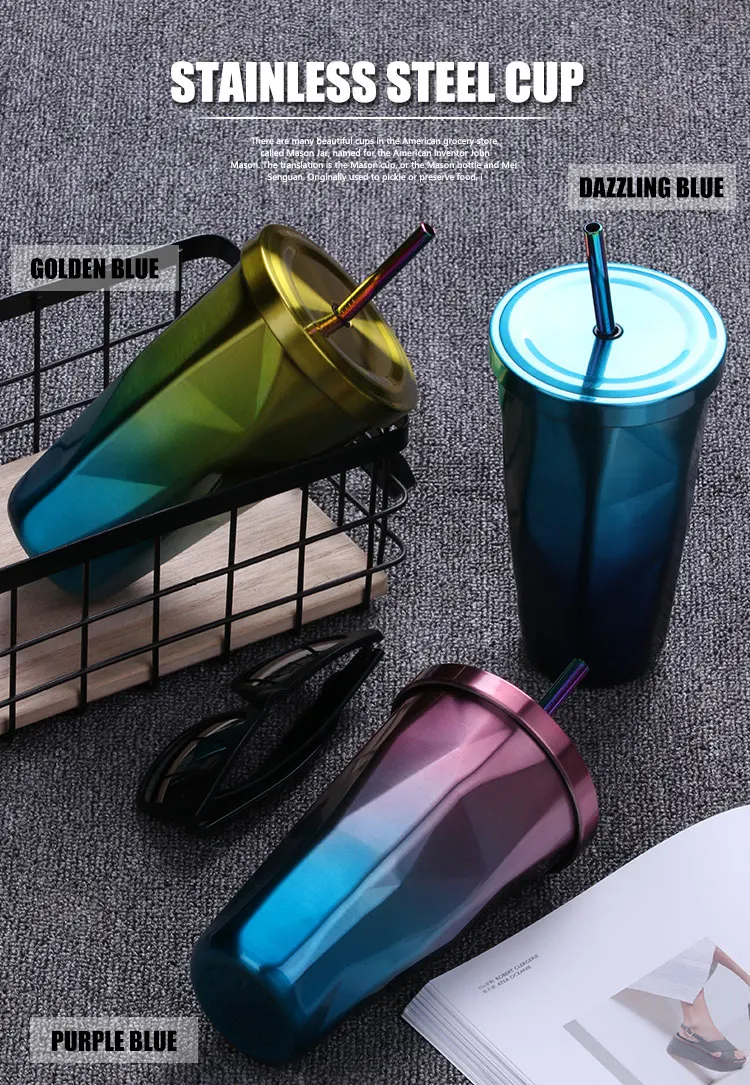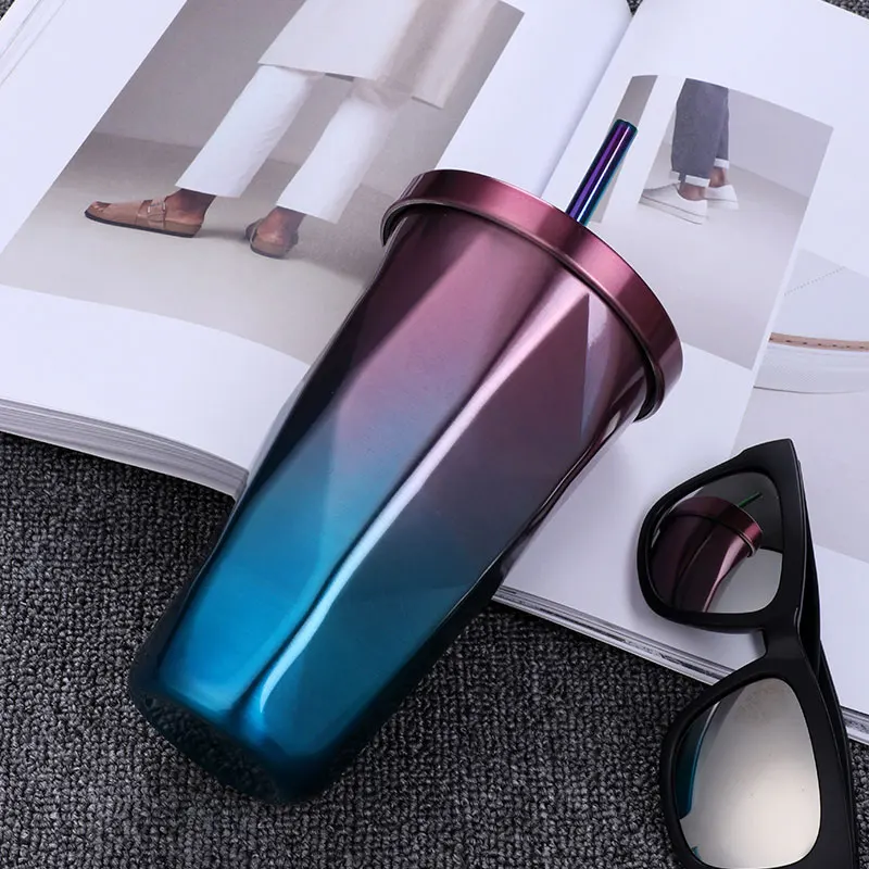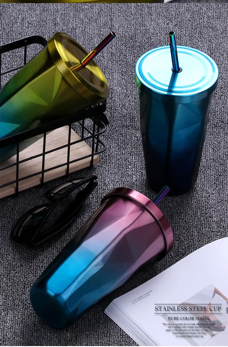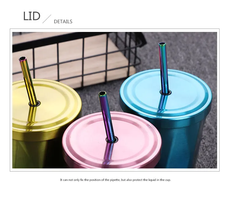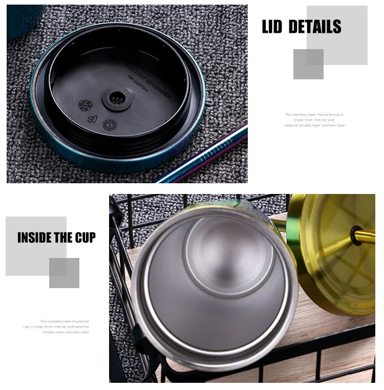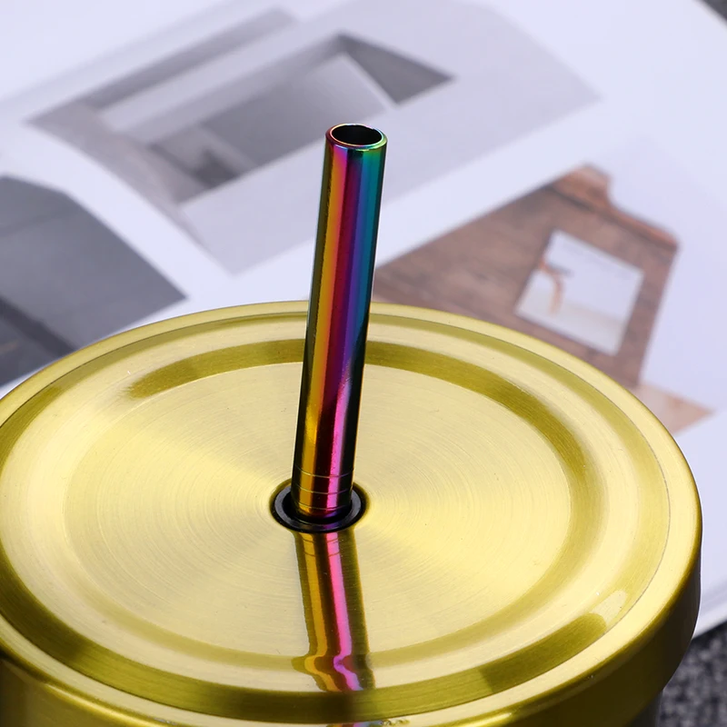 Name:Steel Thermocup with a Rainbow Drinking Straw